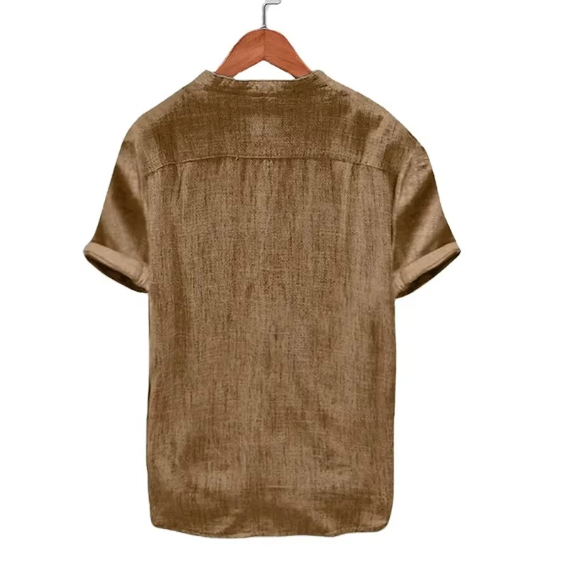 High Quality Solid Color Button up Shirt Fasion Mens Short Sleeve Cotton Linen Shirts